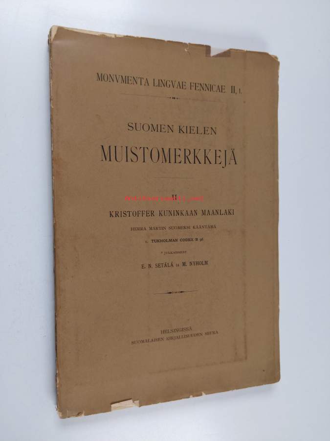 Muu(t) tekijä(t): Martti Airila, E. N. Setälä ym.Sarja: Suomalaisen kirjallisuuden seuran toimituksia 82 osa, II, 1Asiasanat: historia, suomen kieli, keskiaika, oikeushistoria, kielihistoria, kirjakieli, vanha kirjasuomi, maanlait