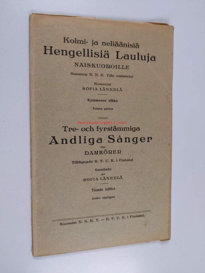 Kolmi- ja neliäänisiä hengellisiä lauluja naiskuoroille : kymmenes vihko = Tre- och fyrstämmiga andliga sånger för damkörer : tionde häftet