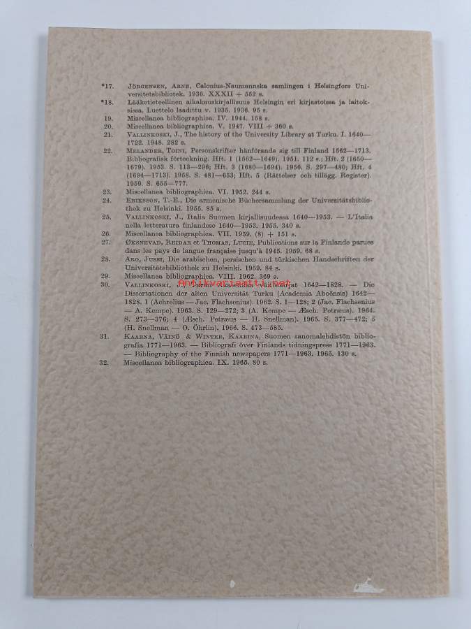 Merkinnät: exlibris: Hannu MutikainenSarja: Helsingin yliopiston kirjaston julkaisuja XXAsiasanat: bibliofilia