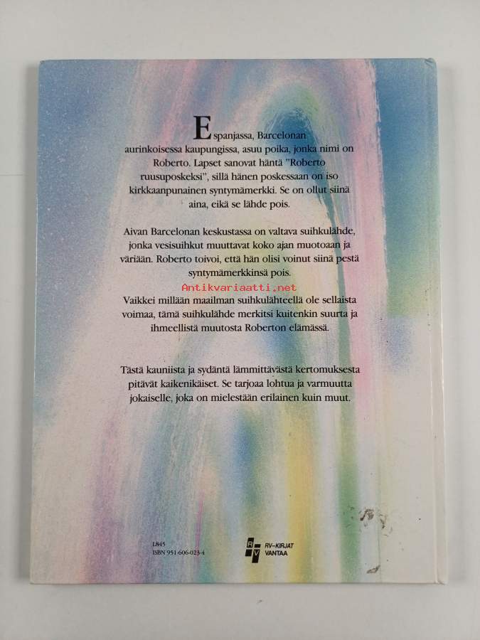 Muu(t) tekijä(t): Tytti Träff, John HaysomAlkuteos: Roberto and the fountain of lightsAsiasanat: hyväksyminen, kiusaaminen, uskonnollinen kirjallisuus, suihkukaivot, erilaisuus, kuvakirjat