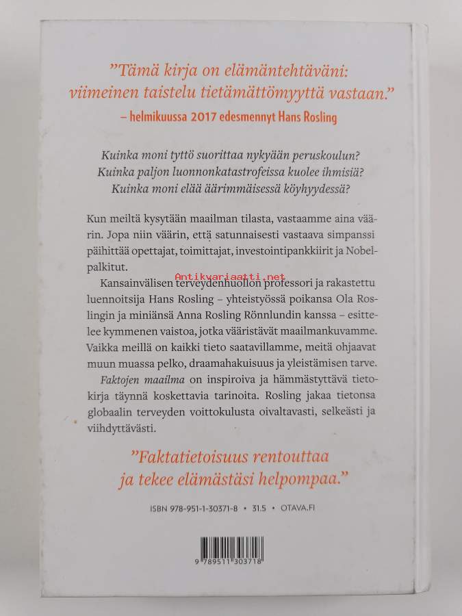 Muu(t) tekijä(t): Matti Kinnunen, Ola RoslingAlkuteos: FactfulnessAsiasanat: koulutus, taloudellinen kehitys, elinolot, geopolitiikka, hyvinvointi, elämänlaatu, väestö, tasa-arvo, köyhyys, kehitysmaat, globalisaatio, maailma, tilastot, sosiaalinen kehitys, sairaudet, väestötutkimus, faktantarkistus, väestötiede, elinajanodote, kriittinen ajattelu, sosioekonomiset tekijät, tulotaso, informaatiomuotoilu