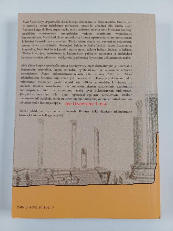 Koko nimi: Kuin kissat Largo Argentinalla : flaneerausta ja assimilaatiota kaupunkitilassa, Aino Niskasen juhlakirja = festskrift till Aino Niskanen = festschrift to Aino NiskanenMuu(t) tekijä(t): Netta Böök, Juhana Heikonen ym.Asiasanat: arkkitehtuuri, professorit, juhlajulkaisut