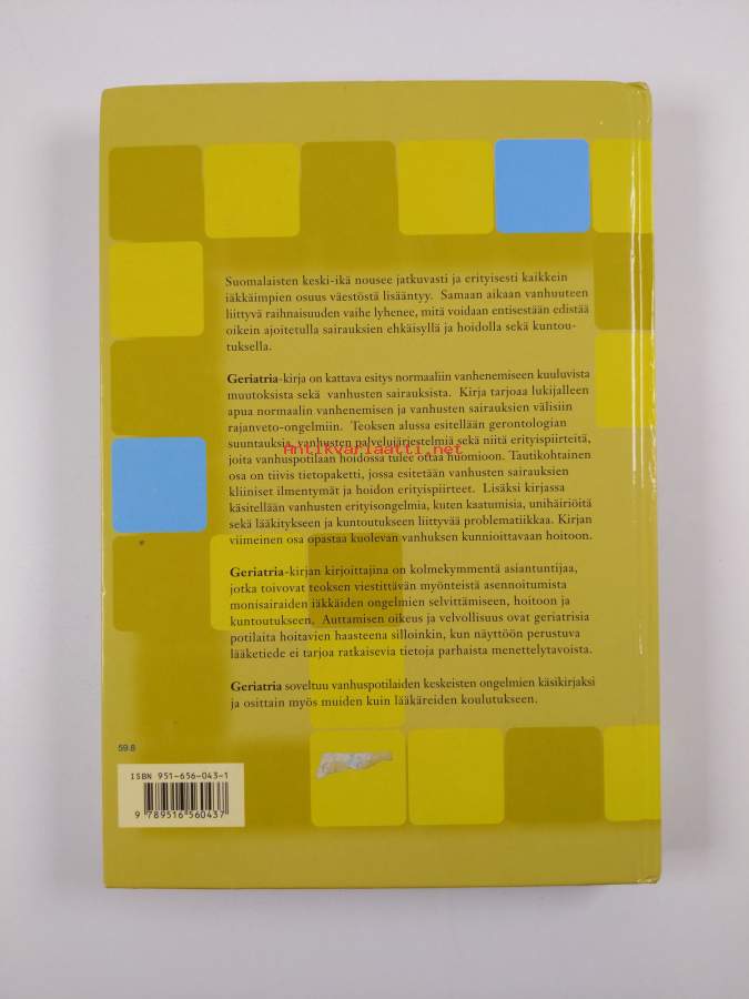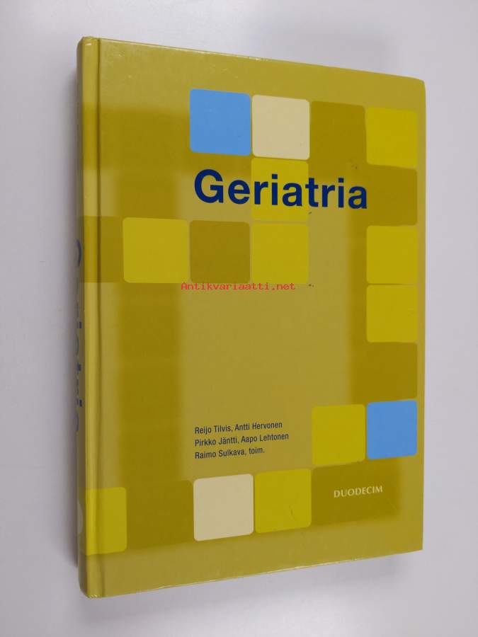 Muu(t) tekijä(t): Raimo Sulkava, Antti Hervonen ym.Sarja: DuodecimAsiasanat: vanheneminen, sydän- ja verisuonitaudit, ravitsemus, hoitotyö, kipu, lääkehoito, unihäiriöt, kuntoutus, masennus, hermoston taudit, potilaat, infektiot, terveydenhuolto, ihotaudit, saattohoito, ikääntyneet, sairaanhoito, psykoosit, sosiaalipalvelut, keuhkosairaudet, gerontologia, vanhustentaudit, geriatria, huonokuuloisuus, psykiatria, ruoansulatuselinten taudit, virtsateiden taudit, silmätaudit, hoitotahto, hematologia, sairaudet, osteoporoosi, huimaus, suun ja hampaiston taudit, munuaistaudit, vanhuspsykiatria, kaatuminen