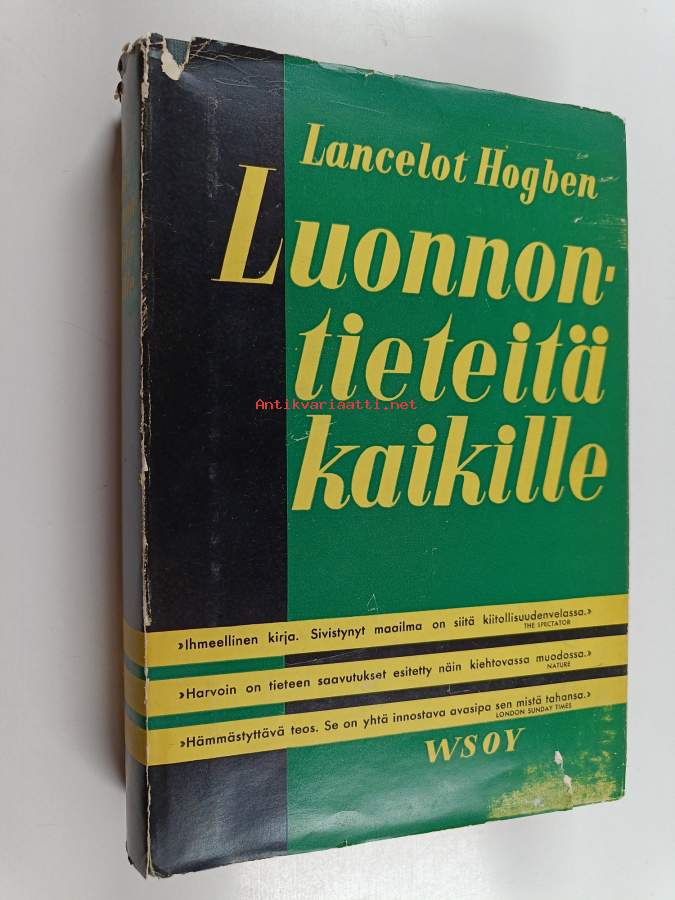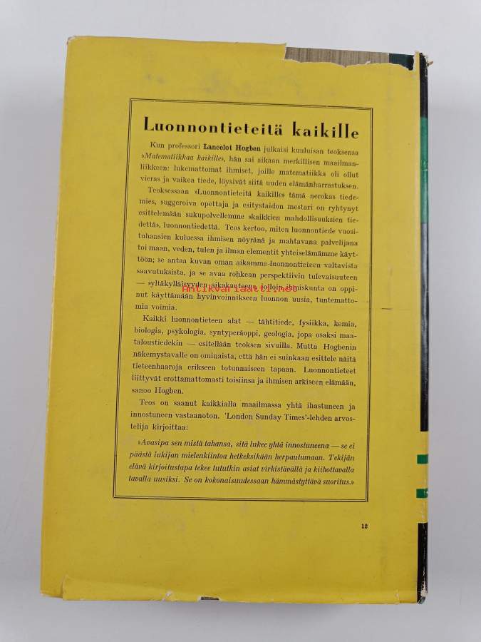 Luonnontieteitä kaikilleScience for the citizenKirjaHogben, Lancelot ; Henkilö Kukkamäki, T. J., 1909-1997WSOY 1951.