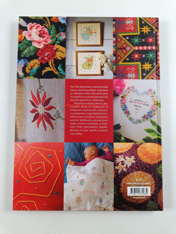 Kirjomalla kauneutta arkeen, 2000. Kirjan mallit tarjoava uusia ideoita kodintekstiilien ja lastenvaatteiden koristeluun ja kankaiden ja esineiden kirjontaan.
