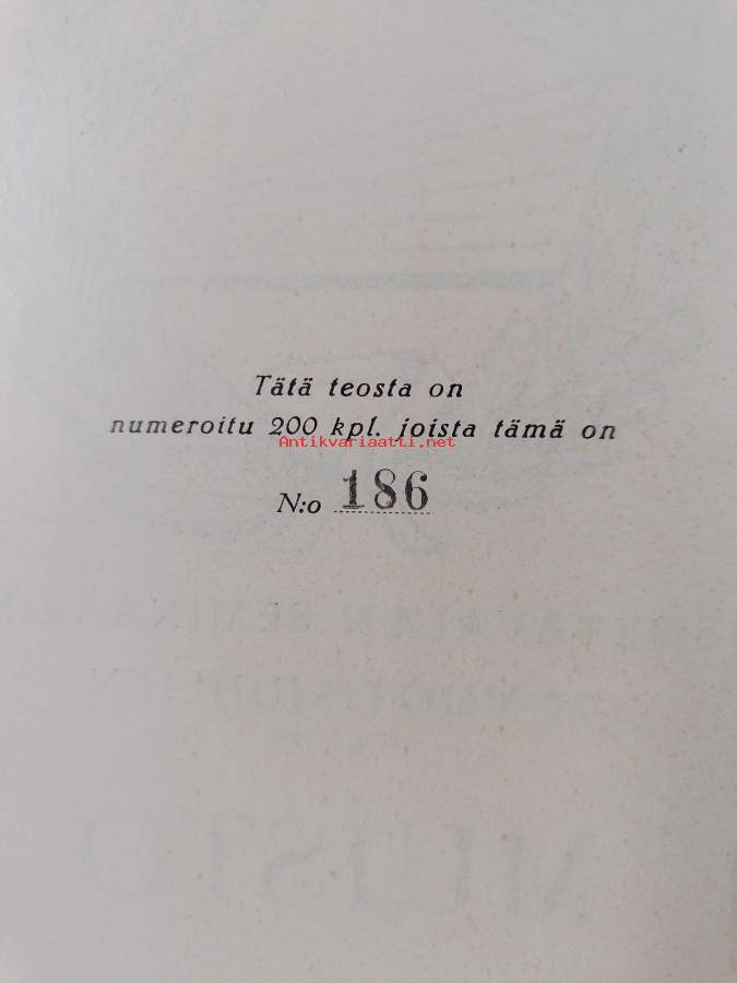Erinomainen. Kansipaperin kunto: jonkin verran kulumaa/pienoisia repeämiä / numeroitu (186/200)