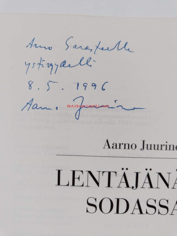 Lentäjänä sodassa (signeerattu, tekijän omiste)