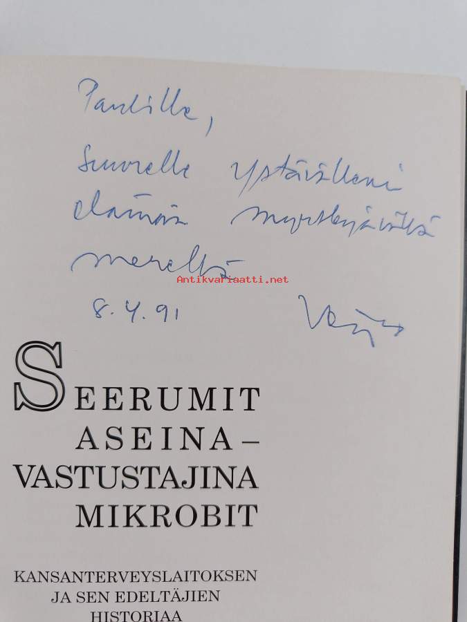 Seerumit aseina, vastustajina mikrobit : kansanterveyslaitoksen ja sen edeltäjien historiaa (signeerattu, tekijän omiste)
