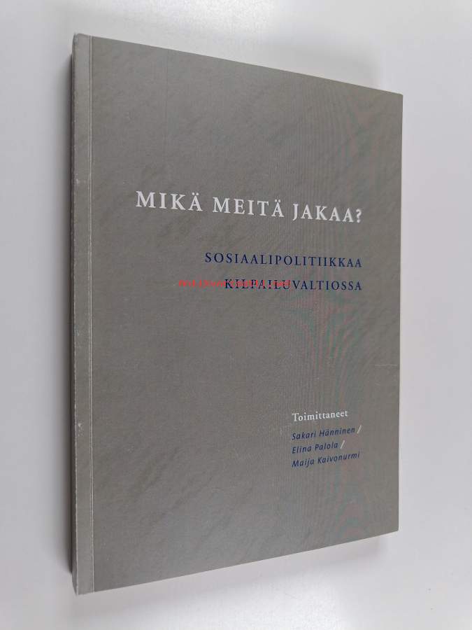 Muu(t) tekijä(t): Sakari Hänninen, Elina Palola ym.Sarja: Teema 7Asiasanat: yksineläjät, hyvinvointivaltio, sosiaaliset ongelmat, yhteiskuntapolitiikka, asuminen, yhteiskunnallinen muutos, hyvinvointi, tasa-arvo, kumppanuus, köyhyys, solidaarisuus, sosiaalipolitiikka, asunnottomuus, syrjäytyminen, toimeentulo, asuntopolitiikka, työllisyyspolitiikka, tulonjako, työvoimapolitiikka, tuloerot, eriarvoisuus, taloudellinen asema, toimeentulotuki, kilpailu (toiminta), public policy, Socioeconomic Factors, Housing, social work, public assistance, Social Welfare, Unemployment, poverty, Divorce, Insurance, single person, Criminals, Widowhood, Residence Characteristics