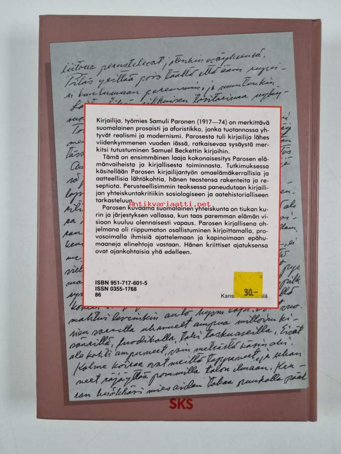 Merkinnät: omistajamerkintä (leima)Sarja: Suomalaisen Kirjallisuuden Seuran toimituksia 519Asiasanat: kirjailijat, henkilöhistoria, kaunokirjallisuus, yhteiskuntakritiikki