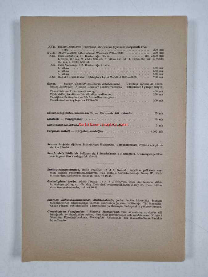 Suomen sukututkimusseuran vuosikirja = Genealogiska samfundets i Finland årsskrift XXXVI 1954-1956