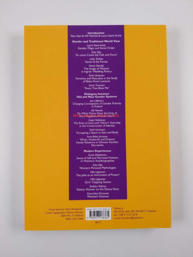 Muu(t) tekijä(t): Satu Apo, Aili Nenola ym.Sarja: Studia Fennica, Folkloristica 4Asiasanat: luonto, elämäkerrat, naiset, huumori, naisen asema, vitsit, kansanperinne, kansanrunous, karjalaiset, tytöt, seksuaalisuus, siirtolaiset, leikit, naistutkimus, sukupuoliroolit, naiskuva, eläkeläiset, folkloristiikka, häät, sukupuoli, huvit, folklore, itkuvirret, naturen, biografier, flickor, sexualitet, folkdiktning, kvinnans ställning, könsroller, kvinnor, kvinnoforskning, lekar, folktradition, humor, pensionärer, naiskulttuuri, Women's studies, karelare, migranter, bröllop, gråtkväden, vitsar, folkloristik, kön, kvinnobilden, kvinnokultur, nöjen
