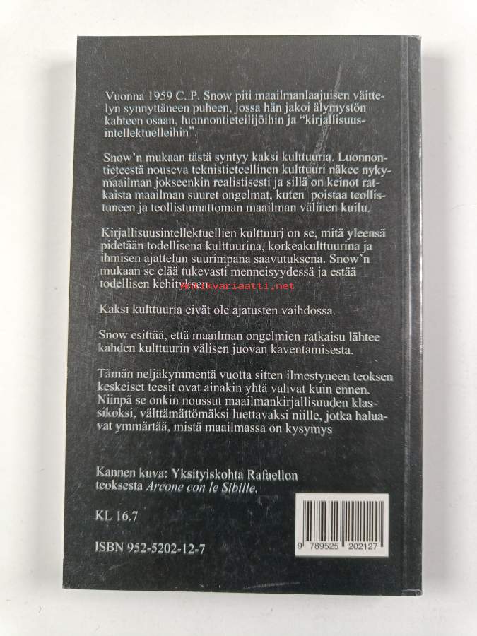 Muu(t) tekijä(t): Stefan Collini, Kimmo PietiläinenAlkuteos: The two culturesAsiasanat: maailmankuva, kulttuuri, luonnontieteet, älymystö, tieteenfilosofia, luonnontieteilijät, tieteentutkimus, humanistiset tieteet, tieteenalat, Science and the humanities