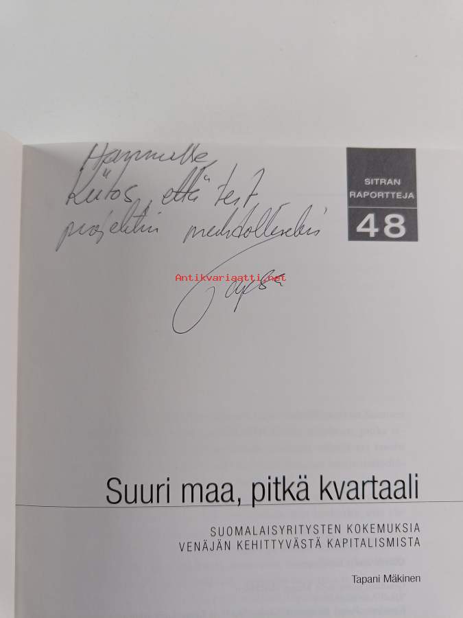 Suuri maa, pitkä kvartaali : suomalaisyrityksien kokemuksia Venäjän kehittyvästä kapitalismista (signeerattu, tekijän omiste)