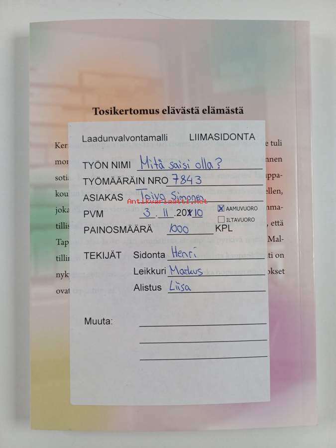 Hyvä. Tarkempi kuntoluokka: K3+ ; Pienoista kulumaa. takakannessa suuri laadunvalvontamalli tarra