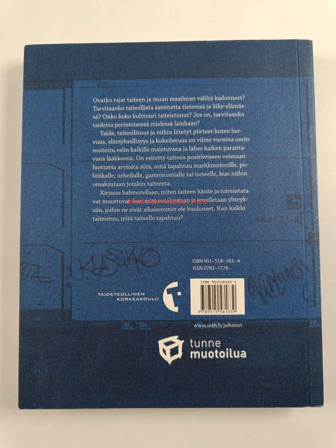 Muu(t) tekijä(t): Susann Vihma, Ossi Naukkarinen ym.Sarja: Taideteollisen korkeakoulun julkaisu. B 79Asiasanat: taide, taiteilijat, taidefilosofia, luonnontieteet, populaarikulttuuri, yhteiskunta, estetiikka, taiteellinen työ
