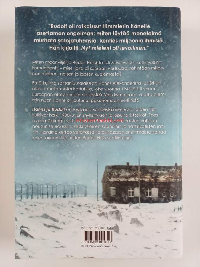 Muu(t) tekijä(t): Juha SainioAlkuteos: Hanns and RudolfAsiasanat: henkilöhistoria, juutalaisvainot, kansallissosialismi, holokausti, oikeudenkäynti, komentajat, pako, natsit, jäljitys