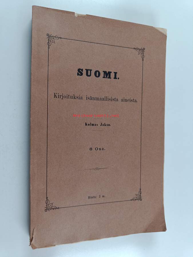 Suomi : Kolmas jakso, 8 osa - Kirjoituksia isänmaallisista aineista (lukematon) ; mm. Kuvakielestä vanhemmassa suomalaisessa lyyrisessä kansanrunoudessa