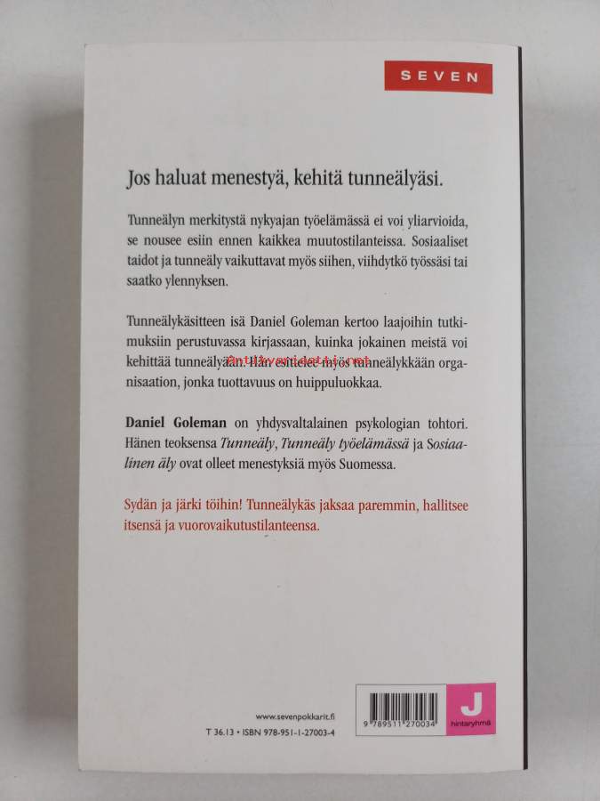 Muu(t) tekijä(t): Jaakko (suom.) KankaanpääSarja: SevenAlkuteos: Working with emotional intelligenceAsiasanat: johtaminen, työelämä, organisaatiot, tunneäly
