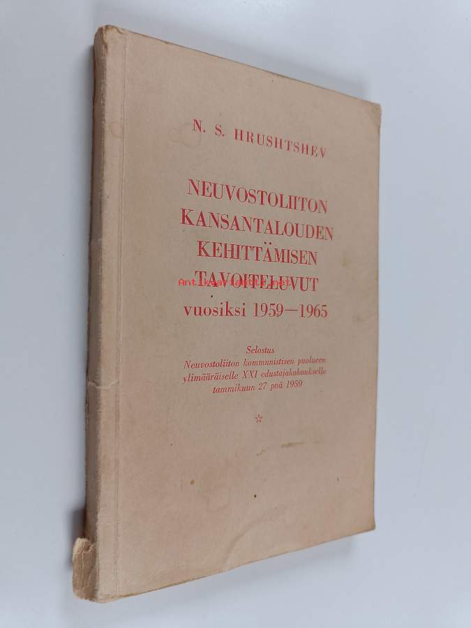 Koko nimi: Neuvostoliiton kansantalouden kehittämisen tavoiteluvut vuosiksi 1959-1965 : Selostus Neuvostoliiton kommunistisen puolueen ylimääräiselle XXI edustajakokoukselle tammikuun 27 pnä 1959 - Loppupuheenvuoro helmikuun 5 pnä 1959
