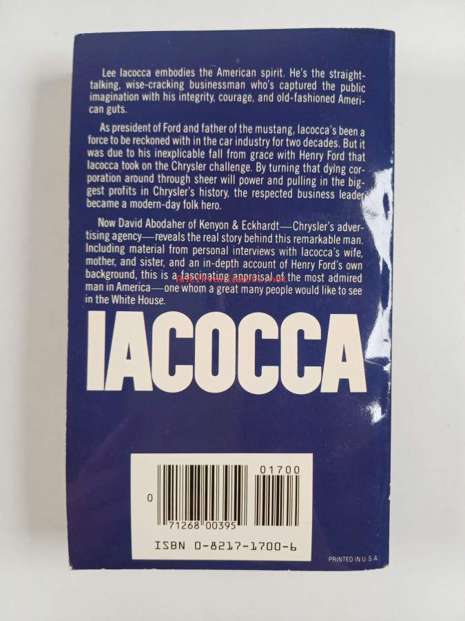 Iacocca autoelämäkerta - Iacocca, automaailman legenda, 1985. Kirjassa kerrotaan Iacoccan tiestä Ford-yhtymän huipulle ja siirtymisestä Chryslerin pelastajaksi.