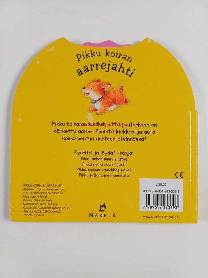 Muu(t) tekijä(t): Terhi LeskinenSarja: Pyöritä ja löydä!Alkuteos: Puppy's treasure huntAsiasanat: lastenkirjallisuus, koira, kuvakirjat, paksulehtiset kirjat, kuvatehostekirjat