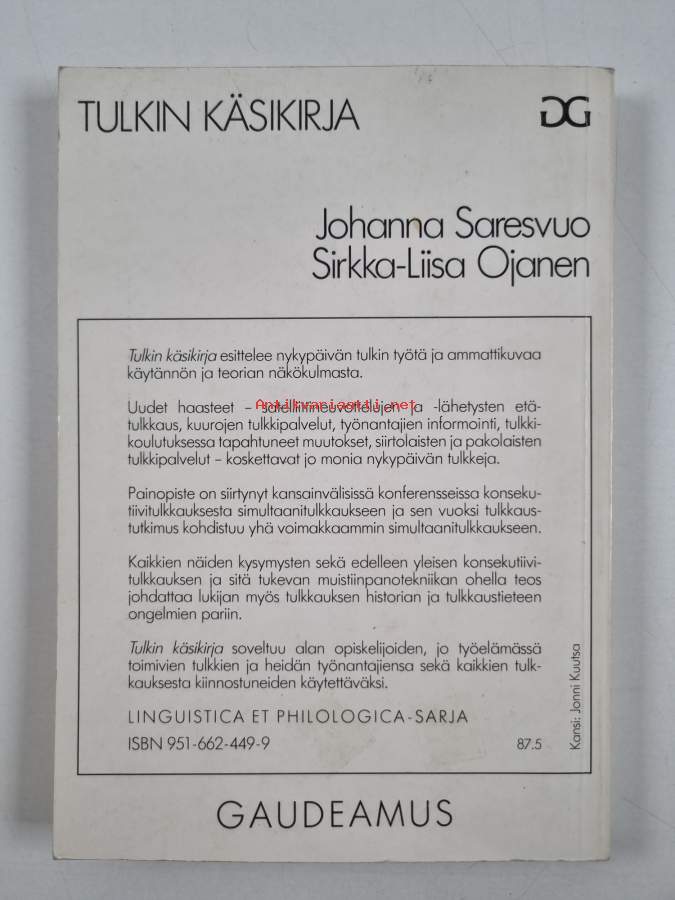 Merkinnät: omistajamerkintä leikattu pois etulehden ylälaidastaSarja: Linguistica et philologica -sarjaAsiasanat: tulkkaus, tulkkipalvelut, tulkit