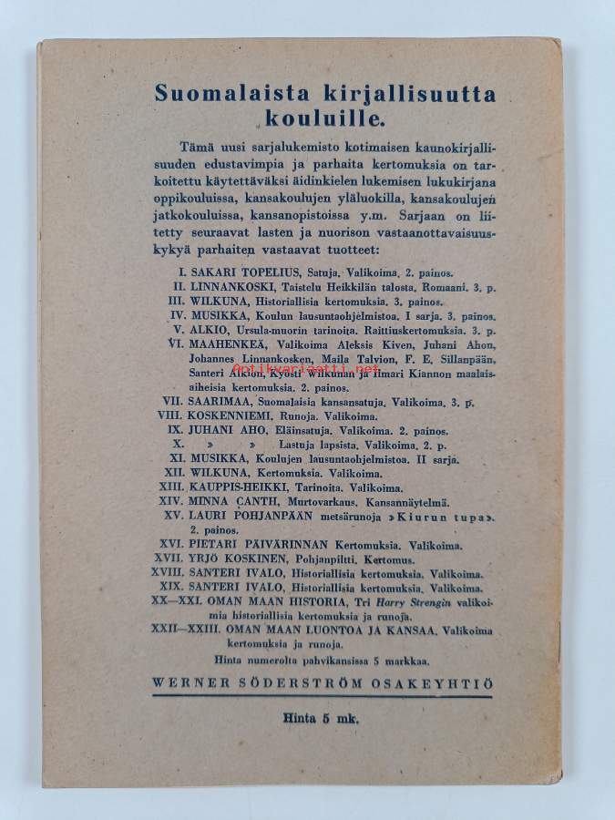 Hyvä. Hieman nuhruisuutta, muutamalla sivulla lyijykynämerkintöjä