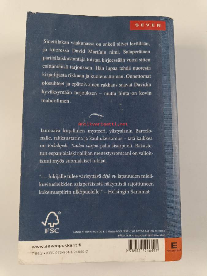 Muu(t) tekijä(t): Anu Partanen, Tarja HärkönenSarja: SevenAlkuteos: El juego del angelAsiasanat: maaginen realismi, Barcelona