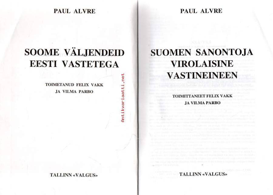 Soome väljendeid Eesti vastetega. Suomen sanontoja Virolaisine vastineineen