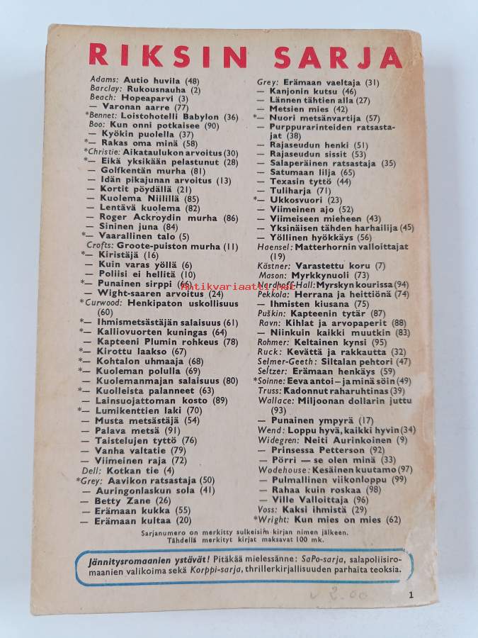 Tyydyttävä. Hieman kulumaa kansissa, selkämyksessä vinoutta, selkämyksessä lukutaittumaa. selkämyksessä repeämää ja teippikorjausta