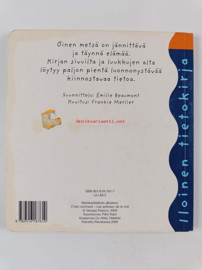 Muu(t) tekijä(t): Päivi Karri, Emilie BeaumontSarja: Iloinen tietokirjaAlkuteos: C'est comment : les animaux de la nuitAsiasanat: Luukkukirja