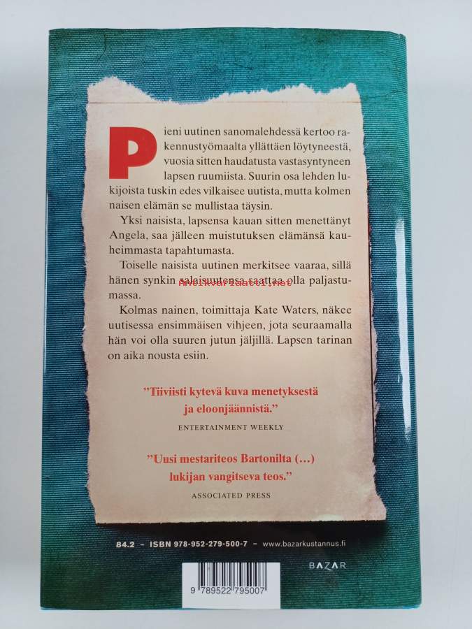 Hyvä. Tarkempi kuntoluokka: K3+ ; Pienoista kulumaa kansissa, pienoista kolhua selkämyksen päissä, selkämyksessä hieman vinoutta. Kansipaperin kunto: pientä kulumaa