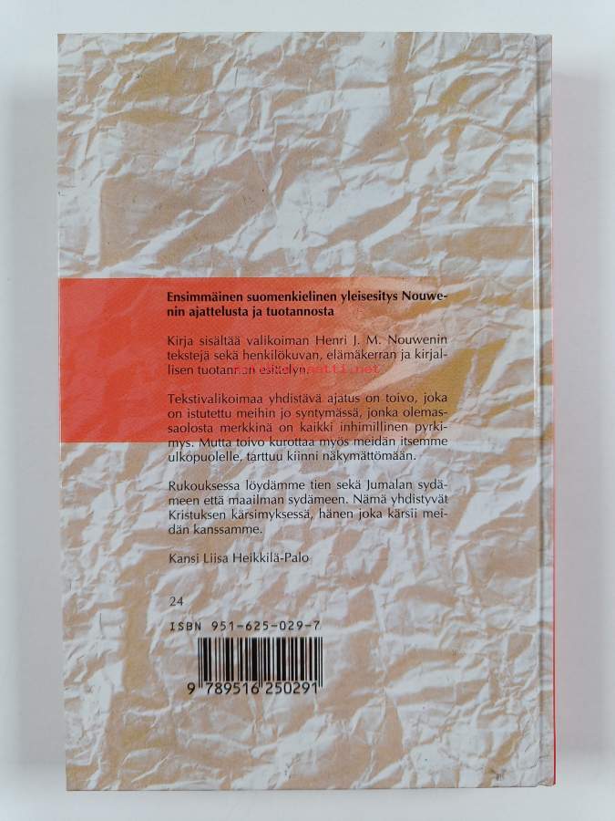 Muu(t) tekijä(t): Anna-Maija Raittila, Robert DurbackAlkuteos: Seeds of hope : a Henri Nouwen readerAsiasanat: uskonelämä, hartauskirjat, maailma, toivo, kaaos