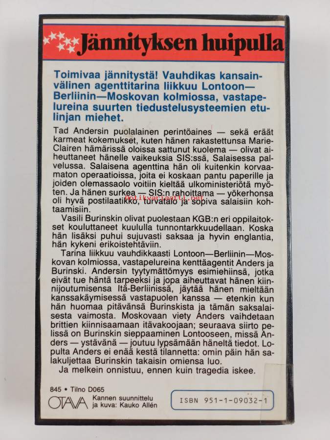 Tyydyttävä. Hieman kulumaa kansissa, pienoista kolhua reunoilla ja kulmissa, pienoista tahraisuutta kansissa, kirjaston poistokirja, kontaktimuovipäällystys