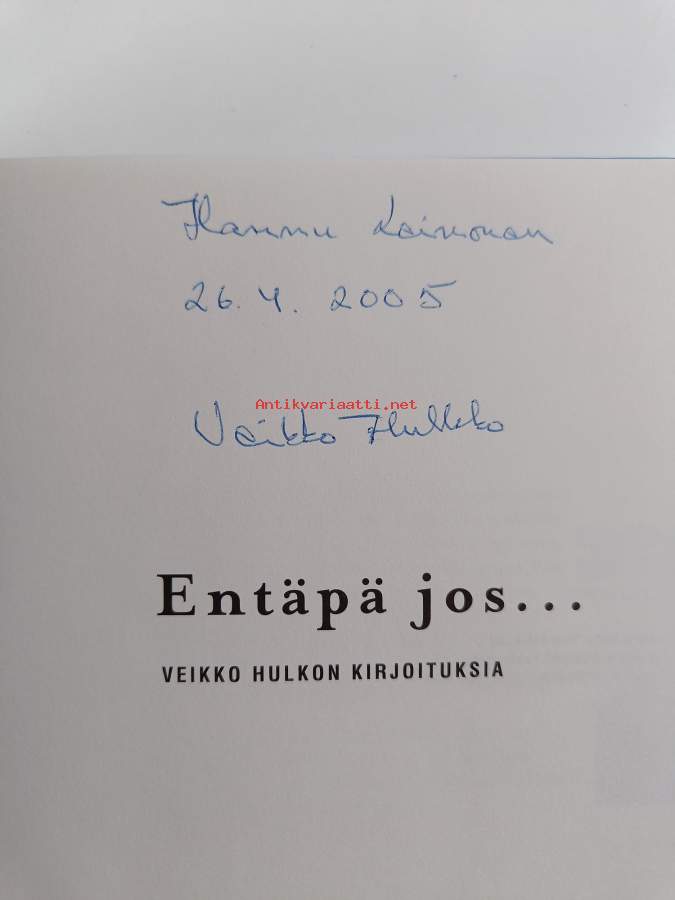 Entäpä jos... Veikko Hulkon kirjoituksia (signeerattu, tekijän omiste)