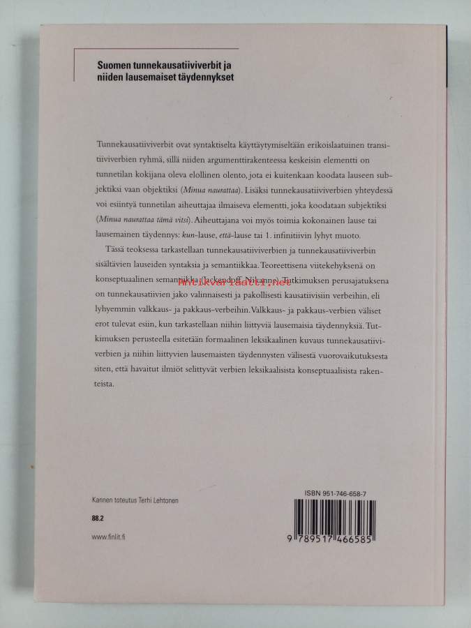 Merkinnät: omistajamerkintä (leima)Sarja: Suomalaisen Kirjallisuuden Seuran toimituksia 1009Asiasanat: suomen kieli, semantiikka, verbit, lauseoppi