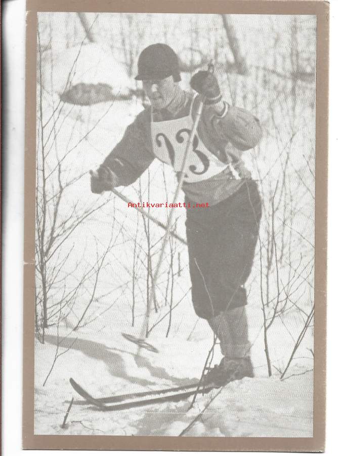 Postikortti Veli saarinen, ensimmäinen suomalainen hiihdon naailmanmestari 1932 Suomen urheilumuseon valokuva-arkisto