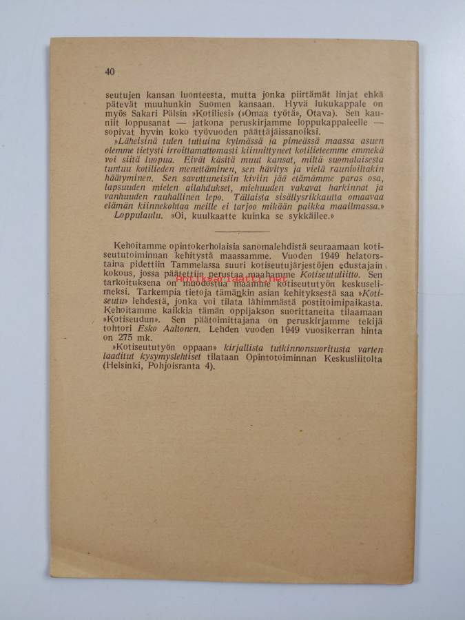 Kotiseututyö : ohjeita ja viitteitä Esko Aaltosen "Kotiseututyön oppaan" opiskeluun