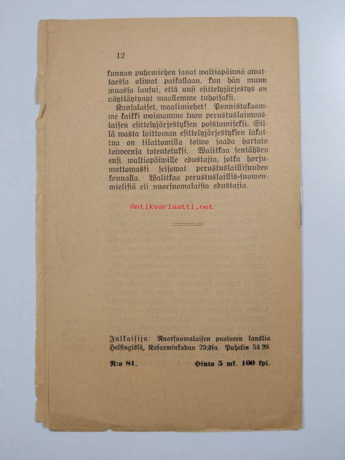 Hallitusmuodon kielisäännökset / R. A. Wrede. - Kun nostettiin kysymys, että vapaan Suomen uuteen hallitusmuotoon otettaisiin .... joka tekisi lopun