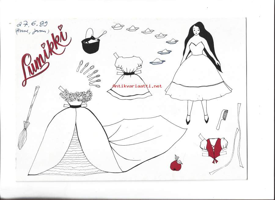 Lumikki -näytelmä, Turun Kesäteatteri 1989, ohjelmapainate, josta Lumikki & Paha äitipuoli paperinukeiksi leikattavissa