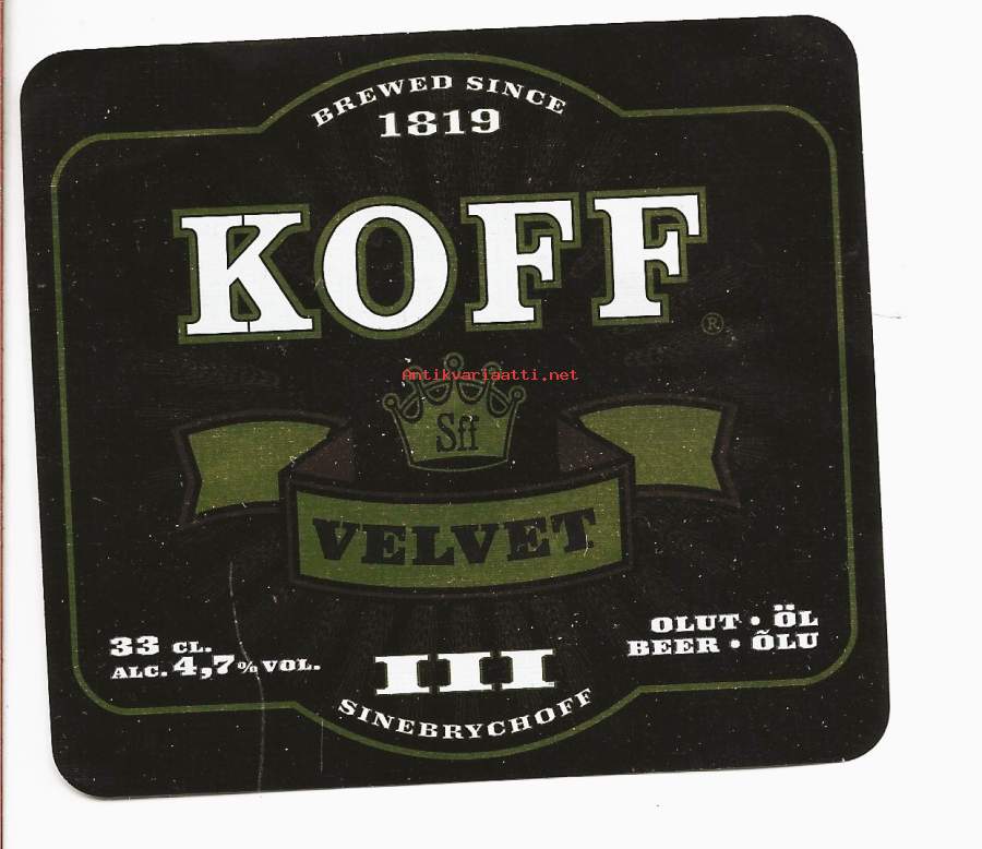 KOFF Velvet III olut - olutetiketti