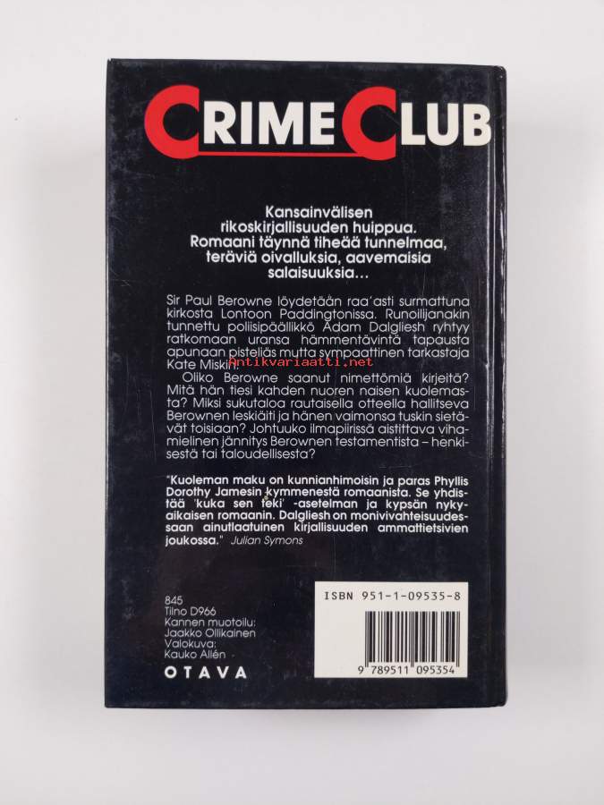 Muu(t) tekijä(t): Kirsti KattelusMerkinnät: omistajamerkintäSarja: Crime clubAlkuteos: A taste for death