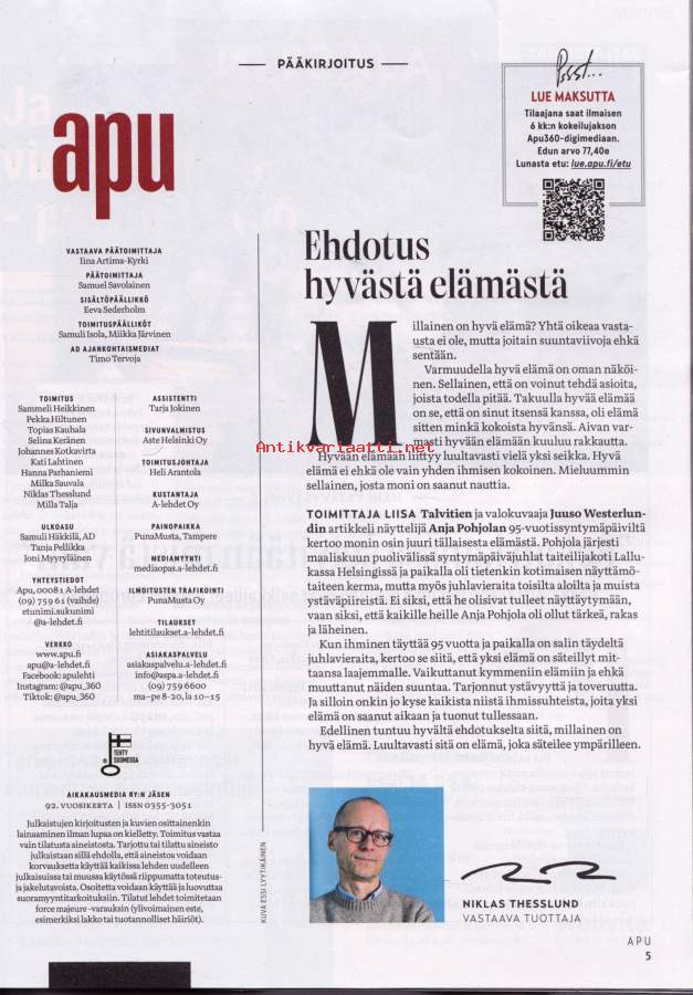 APU 13/2026. Saimi Hoyerin harvinainen sairaus/Anja Pohjola 95-v./Eroon väsymyksestä