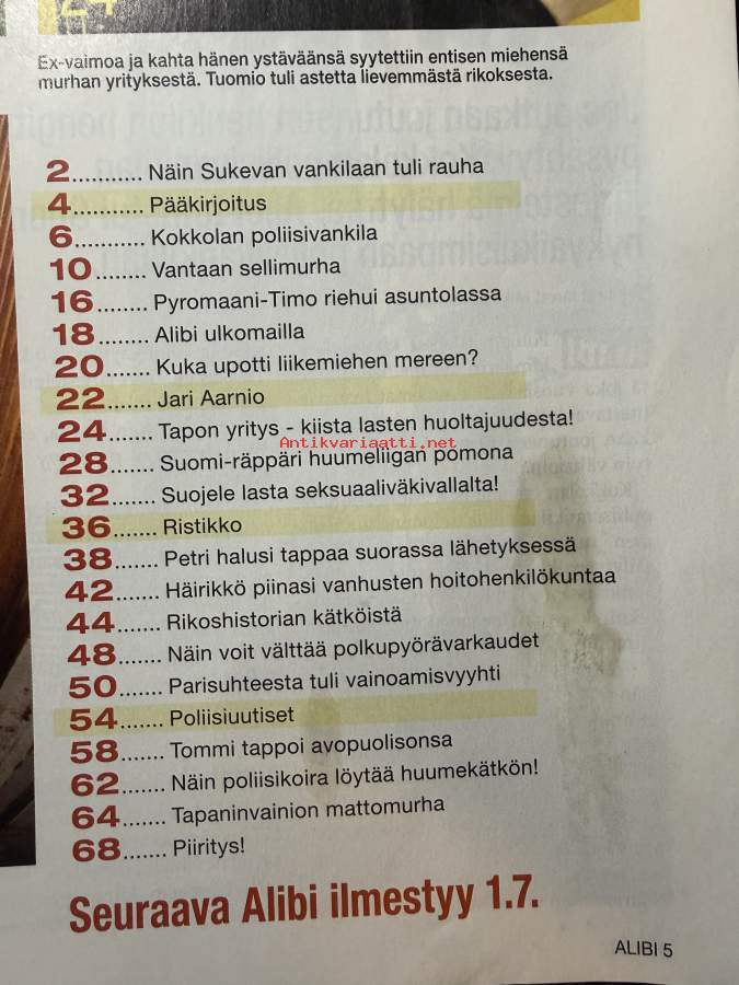 Alibi 2022 nr 6, katso sisällysluettelo