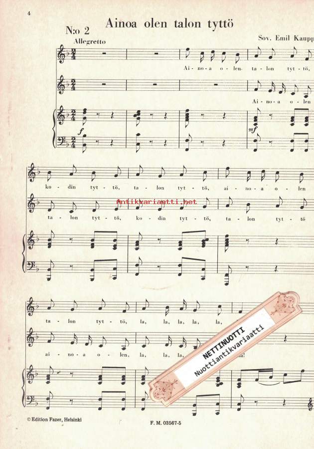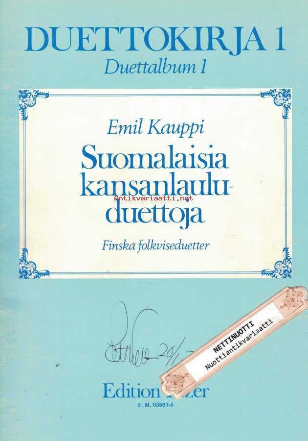 1 Hulivililuonto2 Joen takana3 Istun järven rannalla4 Tuonne taakse metsämaan5 Kaksi kosijaa6 Ma kallioilla suotta7 Joki8 Mansikka9 Yöllä10 En voi sua unhoittaa poijes11 Kuinka se joki12 Kasarmilaulu13 Oon merimies mä nuori14 Tääll' yksinäni laulelen15 Kaurapellon pientarella16 Kun ystävä jätti17 Hevosilla hyvillä18 Ensin on vihanta koivumetsä19 Jos minä taitaisin linnun kielen20 Sa kerro, oi taivas21 Käy neitoa kaksi ruusulaaksohon22 Katsoppa kultani akkunasta23 Oi, jos ilta joutuisi24 Taivas on sininen ja valkoinen25 Miksi laulat lintuseni26 Kyllä minä tiedän27 Hän aikoi luoksein tulla28 On armas mulle aallon tie29 Iso ilo alkaa30 Ainoa olen talon tyttö- Suuri Helposti kuori