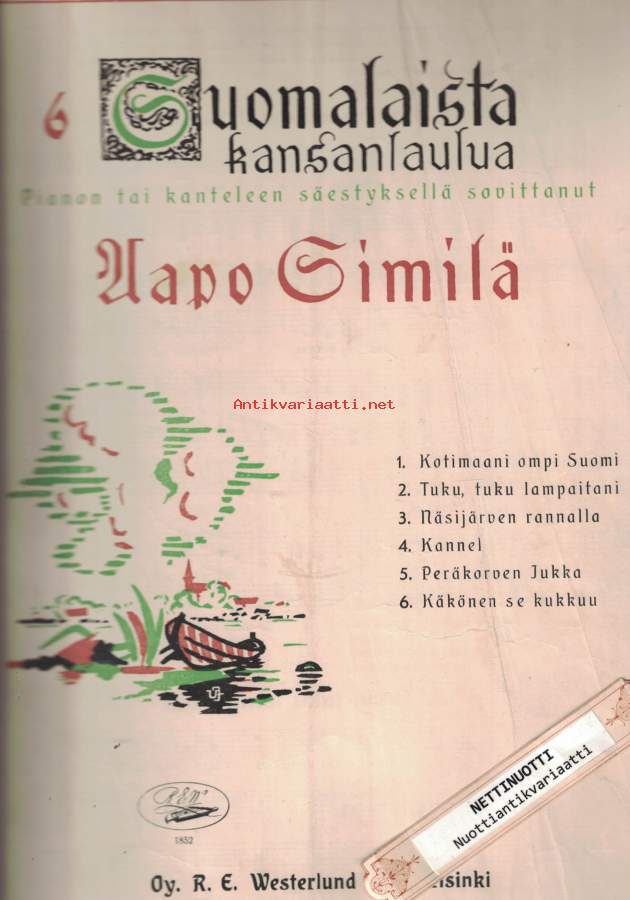 6 Suomalaista kansanlaulua Pianon tai kanteleen säestyksellä sovittanut Aapo Similä