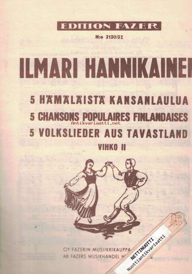 5 hämäläistä kansanlaulua = 5 chansons populaires Finlandaises = 5 Volkslieder aus Tavastland. Vihko 2