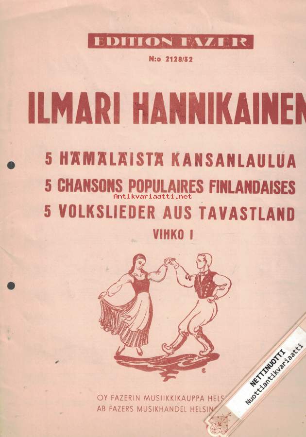 5 hämäläistä kansanlaulua = 5 chansons populaires Finlandaises = 5 Volkslieder aus Tavastland. Vihko 1