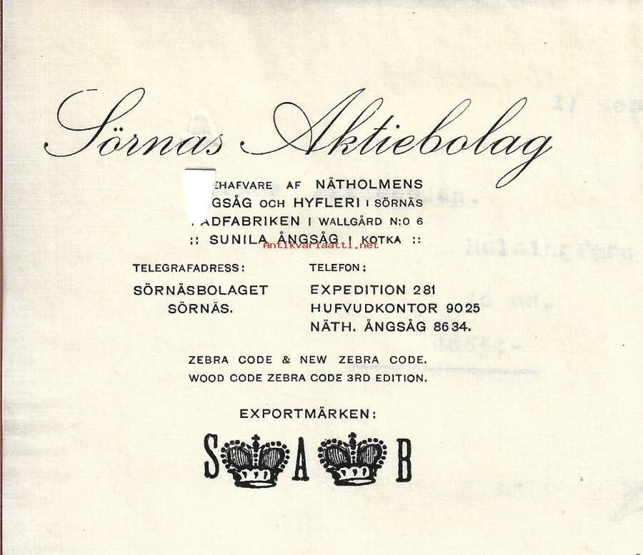 Sörnäs Ab Helsingfors 1921 - firmalomake